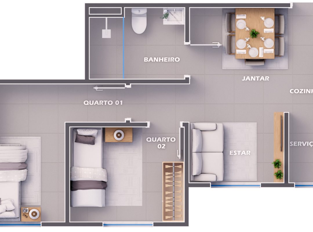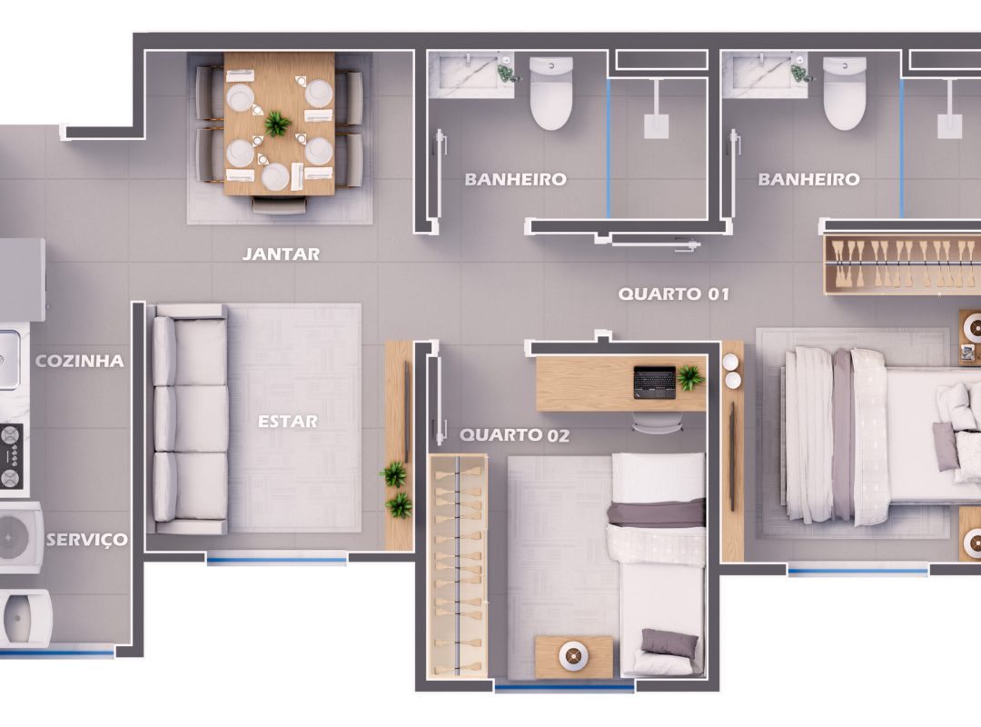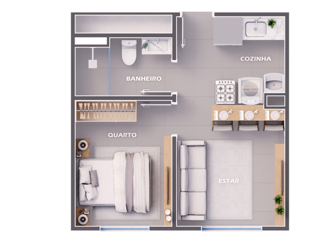 Ambientes integrados, funcionais e versáteis, pensados para oferecer praticidade no dia a dia.